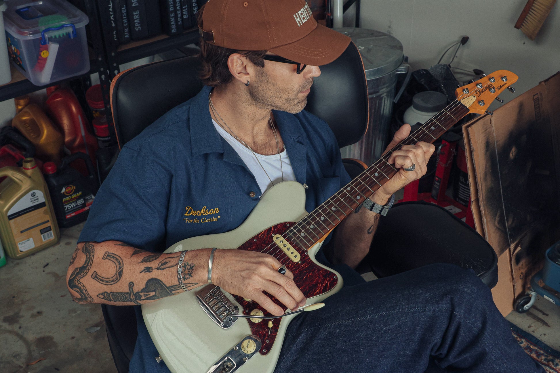 Tortoiseshell buttons, and woven labels throughout. 170gsm, 100% cotton with a soft combed vintage feel.